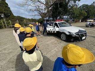 11月16日(月)、3年生は吾田小学校運動場にて、日南警察署出前授業を行いました。