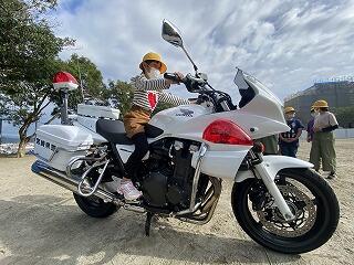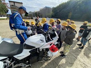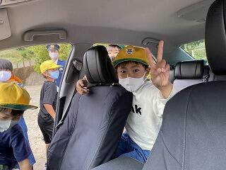 仕事の説明のあとは、パトカーと白バイクを乗車させていただき、子どもたちは興味津々。