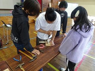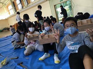 11月19日(木)体育館にて、飫肥杉木工教室を行いました。