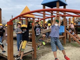 午後からは、中央児童公園にて、遊具を使い、みんなで遊びました。