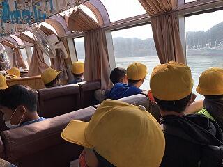 初めて乗船する子どもも多数おり、ドキドキわくわくしながら、窓からキレイな海や島、波しぶきを見ながら移動。