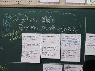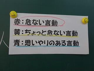 前回の授業に引き続き、今回は、親しい関係であるがゆえに生まれがちな危ない言動、思いやりの言動を考えさせる授業です。