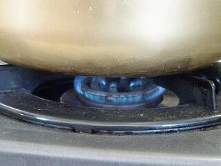 ようやく、お米を洗い終わり、水の量や火加減など、みんなで話し合い、水を入れ、鍋をガスコンロに置き、点火。