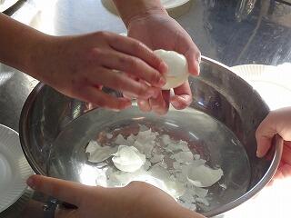 キレイにむける子や半熟たまごの子、殻むきに悪戦苦闘している子もいました。