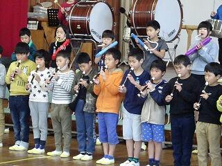 ②学年の児童全員で発表会を目指して演奏する中で、表現の技能を高めると共に、音の重なりや響きの美しさ、音楽の楽しさを味あわせる。