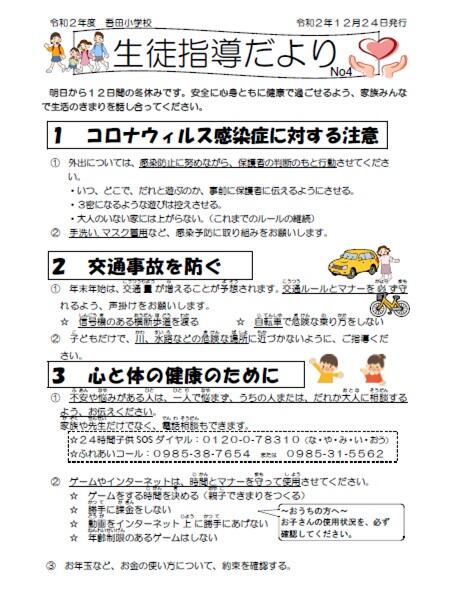 冬休み中も、新型コロナ感染予防を徹底し、交通事故等に気をつけて、楽しい冬休みにしてください。