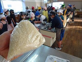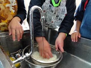 水を入れ、お米を洗い始めましたが、水をこぼす時、一緒にお米も流れ出す班も。
