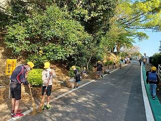 今朝、5・6年生が早速ボランティア活動をがんばっていました。新しい先生や友だちと一緒に、さくら坂やきつね坂、体育館への通路など、落ち葉を掃いてきれいにしてくれています。昼休み時間も取り組んでくれている人もいました。奉仕の心に感動します。本当にありがとう。美しい学校に益々なります。