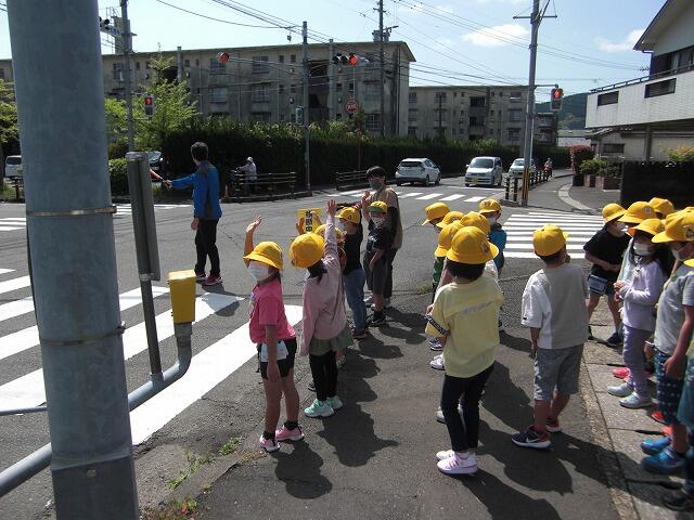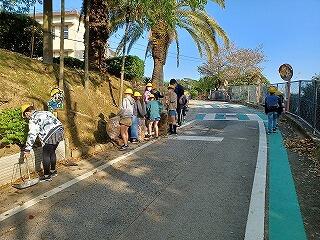今日は、交通安全教室を実施しました。学年部ごとに分かれて、実際に学校の周りを歩いて、交通ルールを体験的に学びました。1・2年生は、桜坂を下りて、コープみやざき日南店の方に横断歩道で渡る練習をしました。交通量の多い交差点です。しっかり手を挙げて左右を確認して渡ることを徹底しました。ご家庭でも飛び出しをしないように声かけをよろしくお願いします。また、今日はmrt宮崎放送局が取材に来られました。夕方のニュースで子ども達の様子が放映される予定です。是非、ご覧ください。