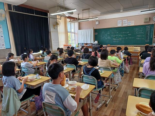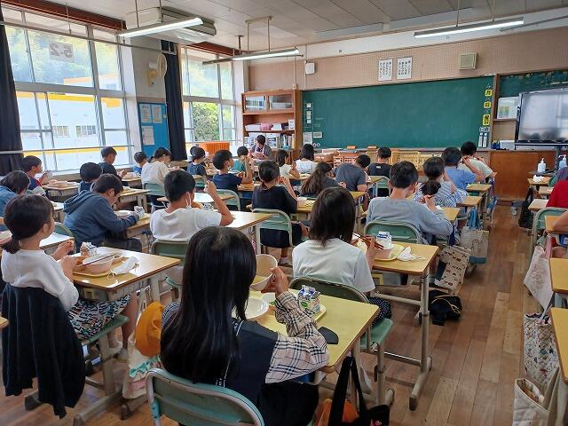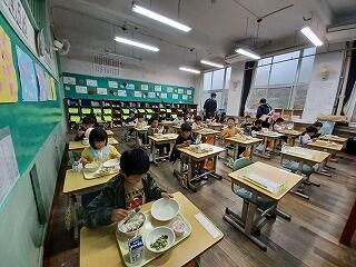 子ども達にとって楽しみの給食の時間ですが、コロナ禍になってからは、黙食を徹底しています。一人一人前を向いた姿勢で無言で食べています。宮崎県内、日南市内でも感染が広がっています。感染を防ぐためには、仕方がないことです。今後も、マスクの着用、3密の回避、換気を徹底して、感染拡大防止に努めていきます。