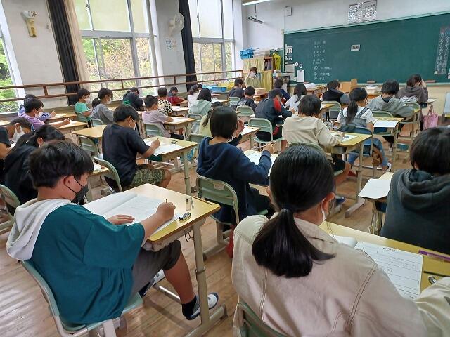 6年生が、全国学力・学習状況調査に取り組みました。国語、算数、理科のテストとアンケート調査を行いました。いつも受けている単元テストよりは問題量も多く、時間も長いので疲れたことでしょう。あきらめずに最後まで集中して問題に取り組んでいました。結果が楽しみです。しっかり復習をして、これからの学習に生かしていきましょう。