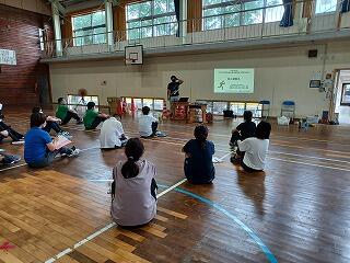 8・9月の月目標は「立腰の姿勢で話を聞こう」です。今週は、2校時が始まる前に係の職員が、立腰の姿勢の仕方を校内放送でアナウンスしています。それにあわせて子ども達は、立腰の姿勢をして、授業をスタートさせています。写真は理科室で5年生が授業開始を待っている様子です。素晴らしい姿勢です。また、机の上もノートが開かれ学習する準備がしっかり整っています。立派です。
