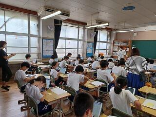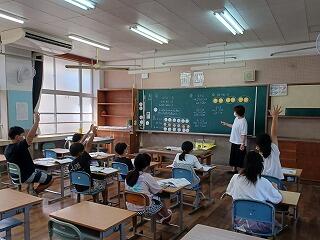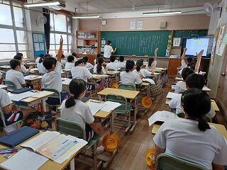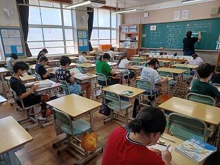 今日は、高学年部の参観日でした。今日もたくさんの保護者の方々が来校され、子ども達の授業の様子をご覧になりました。5年生は、算数で「分数」の学習でした。少人数に分かれての指導で、分数で表されたものの量感を視覚的に感じ取らせながら、等しい分数を見つける方法を導き出す学習でした。6年生は、外国語科でした。夏休みにしたことを英語で表現することを学習していました。最後には、英語を書く活動にも取り組んでいました。どの学級も、それぞれの課題に真面目に、楽しく取り組んでいました。さすが高学年、吾田っ子のお手本になる子ども達の学習態度は素晴らしかったです。学級懇談では、集団宿泊学習や修学旅行についての説明もありました。今後も新型コロナ感染症に負けないように、感染防止対策の手を緩めることなく、楽しい思い出作りができるように準備を進めていきます。