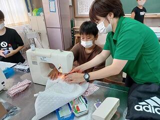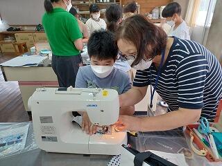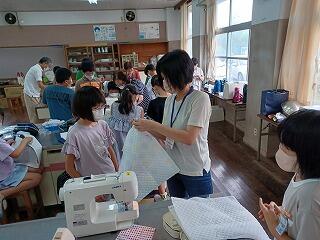 今日は、5年生の家庭科の時間に、学習支援ボランティアとして、倉中順子さん、坂元恵津子さん、中村登美子さん、能島みゆきさん、吉田利子さん、松浦みゆき地域コーディネーターの6名が来校されました。子ども達のナップサック作りのお手伝いをしていただきました。1学期にも裁縫の時間にお手伝いに来ていただいています。今回は、ミシンの使い方や縫い方を分かりやすく教えてくださいました。お忙しい中、本当にありがとうございました。すてきなナップサックができました。