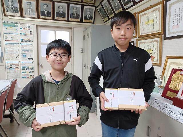 日南市内の全ての小中学校の児童生徒を対象に、他の児童生徒の模範となる善行のあった者に、一般財団法人「椎屋恵進会」より、盾と記念品が送られてきました。本校からは、6年生2名が表彰されました。校長室で贈呈式を行いました。3月の全校朝会で全校児童に紹介します。2人はこれまで、他人のため、学校のために、優しい思いやりの心や奉仕の心で過ごしてきています。クラスメートも認める2人です。おめでとうございます。これからも、「善いこと」を続けてください。