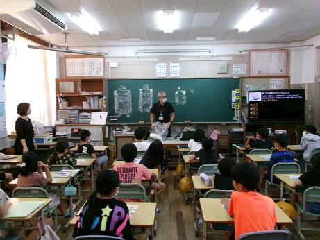 9月28日(木)に、日南市役所美化推進課の方に来校していただき、4年生がエコ大作戦の授業を受けました。