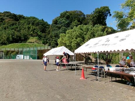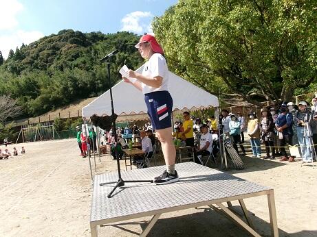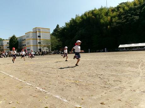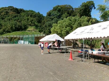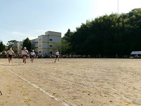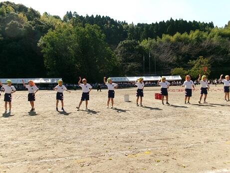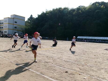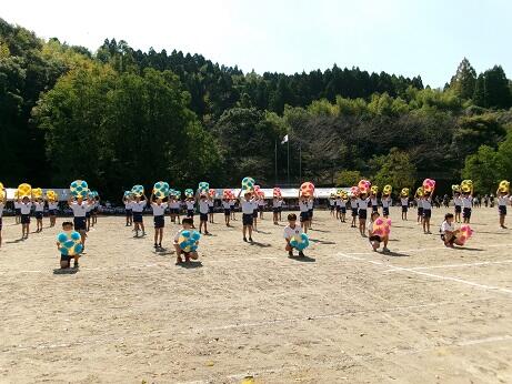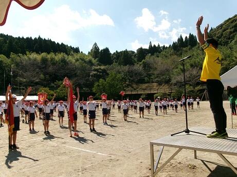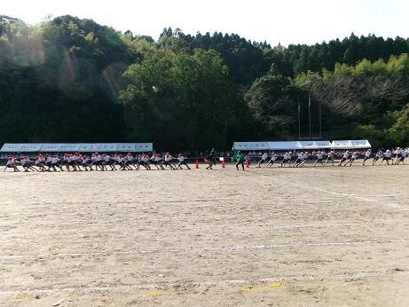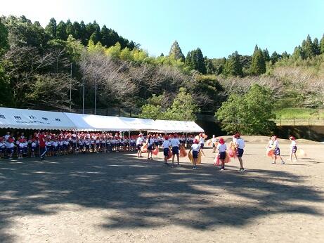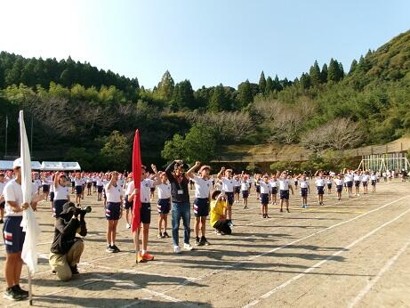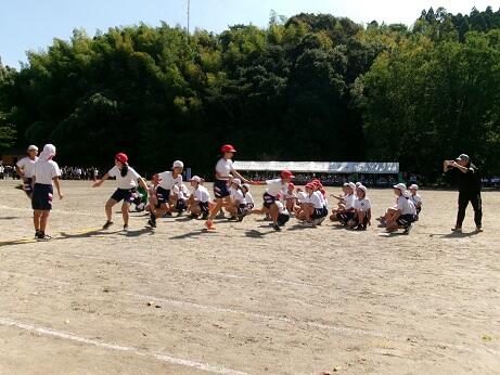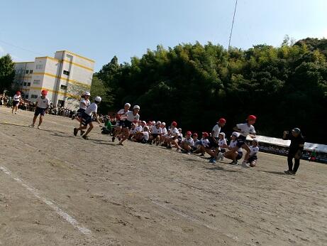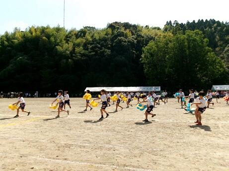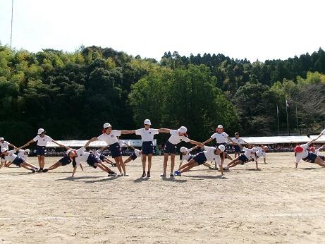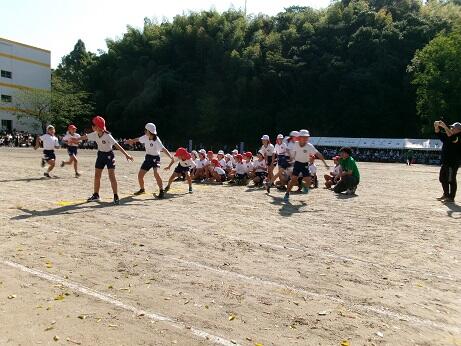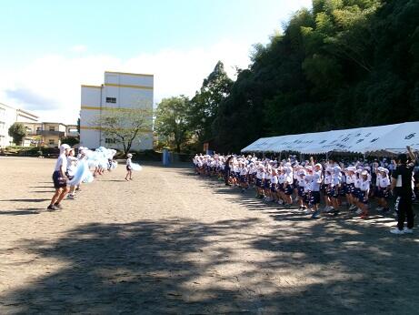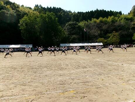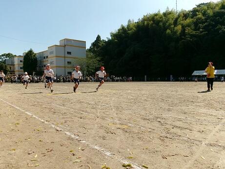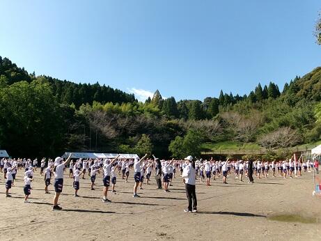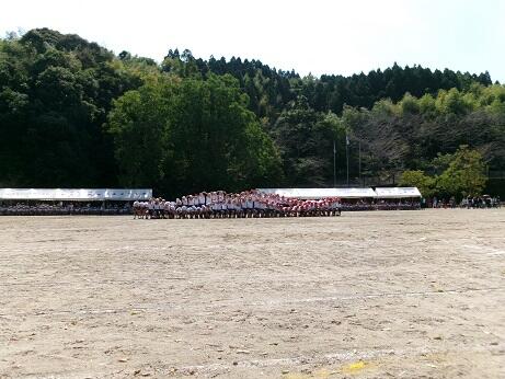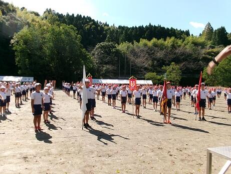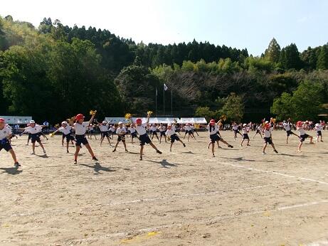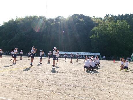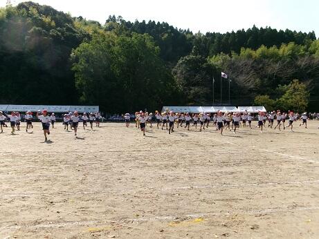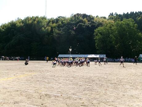 空の青さがくっきりとしている秋晴れの中、全校児童がよくがんばっていました。