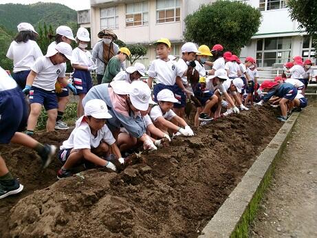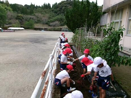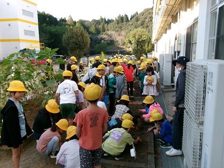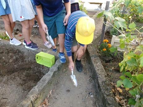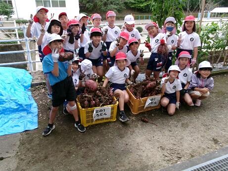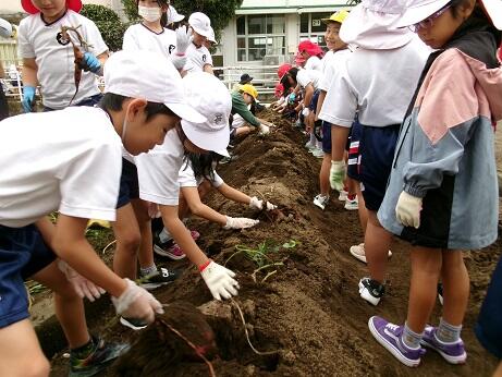 10月11日(水)には、2年生が芋掘りを行いました。5月25日(木)の芋の苗植えから約5ヶ月がたちました。