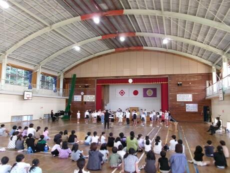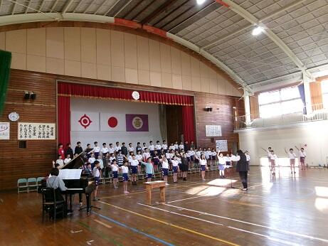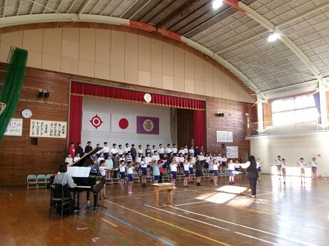 10月27日(金)の朝の活動は、音楽集会で4年生の発表でした。全校児童の前で練習の成果を発表してくれました。