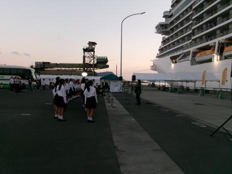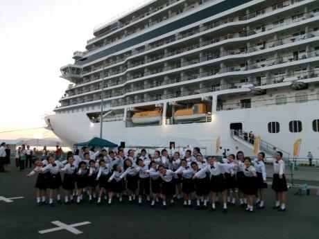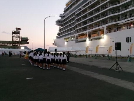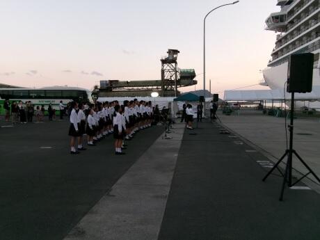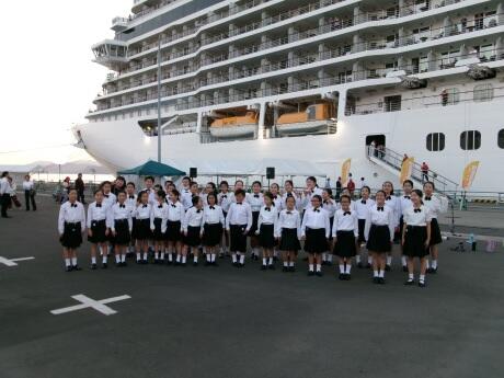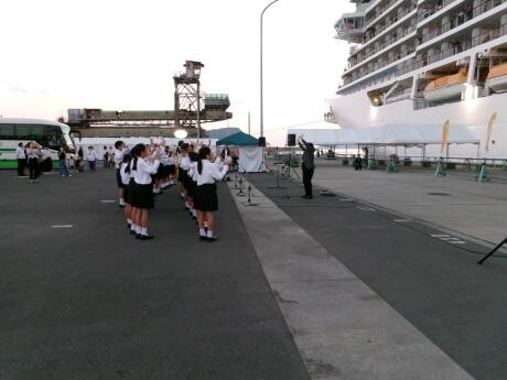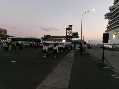 夕方の出港式に、吾田小合唱部が素敵なメロディを披露し、おもてなしをしてくれました。