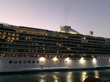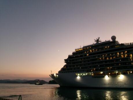 10月18日(水)には、油津港にクルーズ船のセブンシーズ・エクスプローラーが寄港しました。