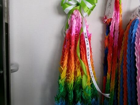 講話を聞いた後、千羽鶴を奉納し、すぐに館内に掲示してもらえました。その後、おみやげを買い込んでいました。