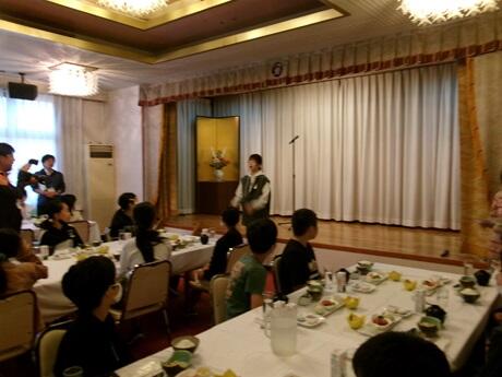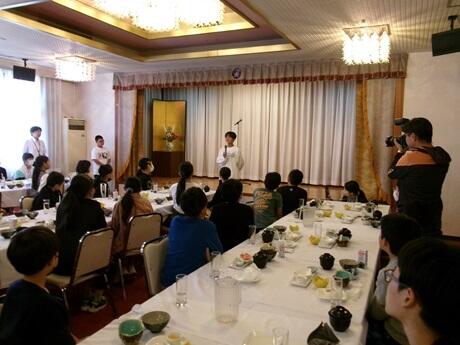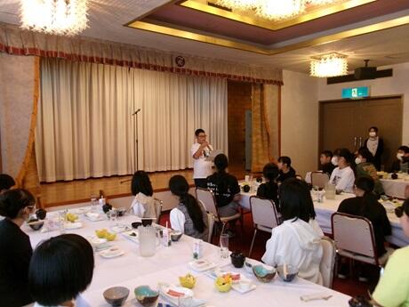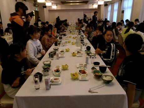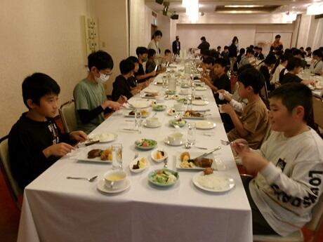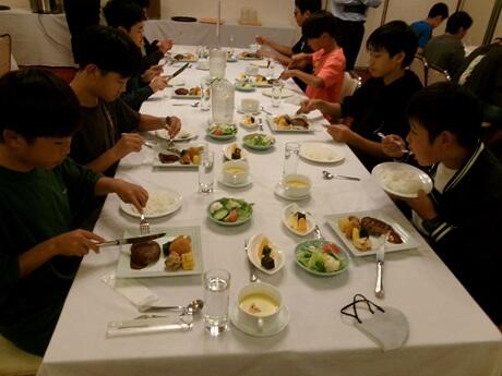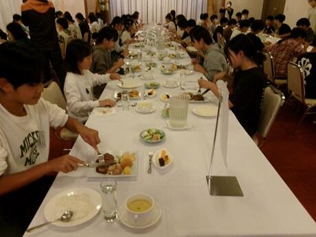 アクアガーデンホテル福丸には、予定よりも早く到着しました。ナイフとフォークを使っての洋食体験でした。