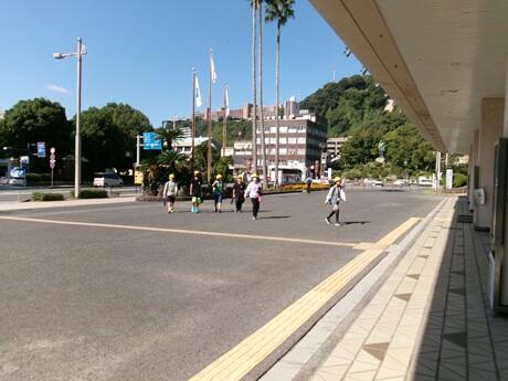 鹿児島市中央公園横の西郷隆盛の銅像前で記念写真後、グループ学習での鹿児島市内見学の旅が始まりました。