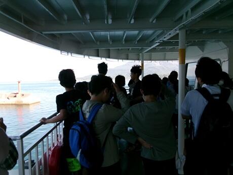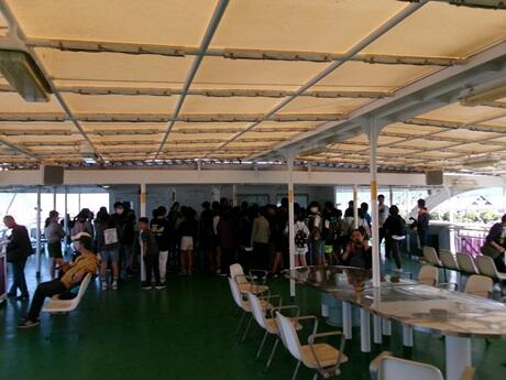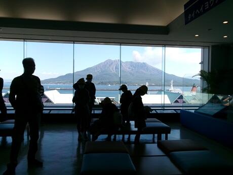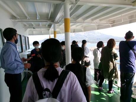 昼食の弁当を食べた後、水族館内の見学と買い物をグループごとにして、桜島フェリーに乗りました。