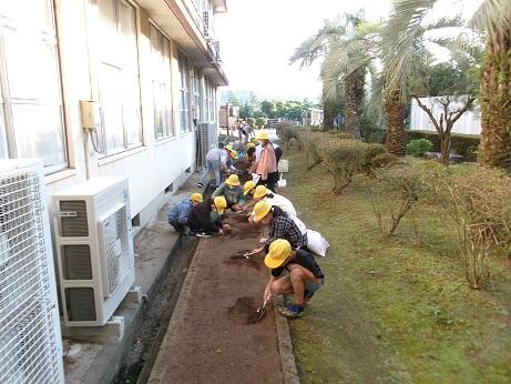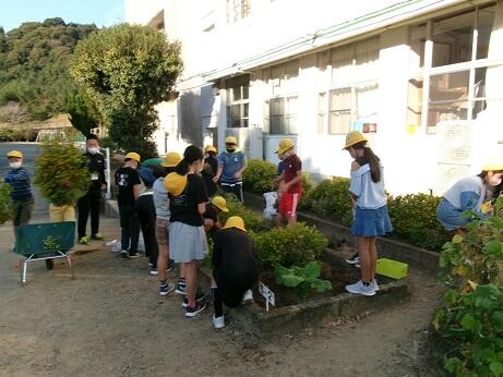 10月26日(木)の朝の活動は、みどりタイムでした。夏の花を抜いて、土作りを行う作業でした。