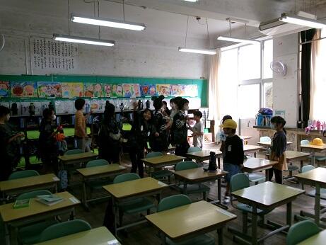 窓拭きやエアコンのフィルターの清掃、運動場の溝さらい、校内道路の修復など、大勢で取り組みました。