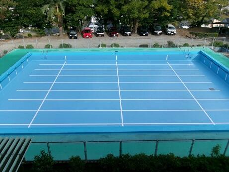 話は変わって、管理棟の外装工事やプールの床面の塗装工事がほぼ終わりかけていることをお知らせします。