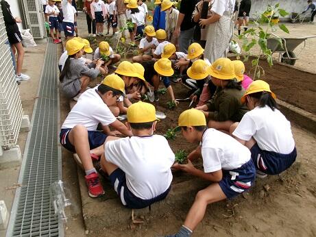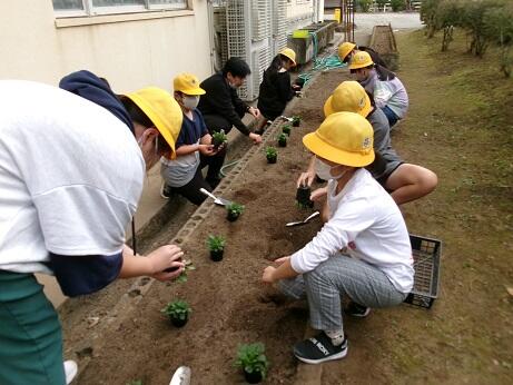 11月9日(木)の朝の活動は、みどりタイムで花の苗の植え替えを全校で行いました。