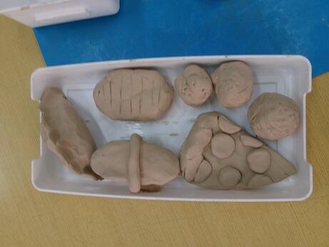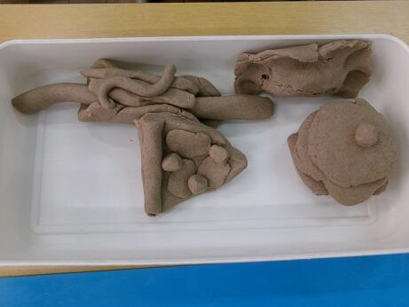 子どもは自分の思いやイメージで粘土作品を作り上げていきます。互いの作品も見合うこともありました。