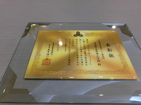 吾田小は昨年度と本年度の2年連続の受賞で、校長と体育主任の2名が出会しました。