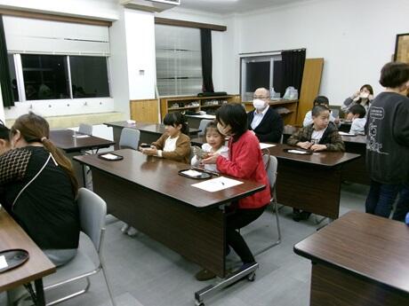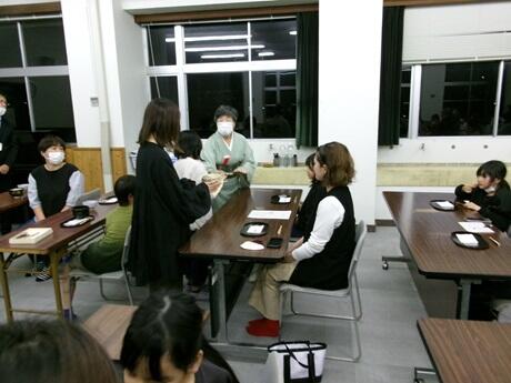親子での40名近くの参加で、「お客様」・「お手前」・「お運び」の三つの役目を交代で果たしていきました。