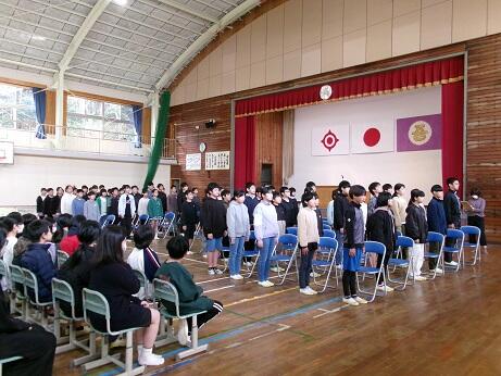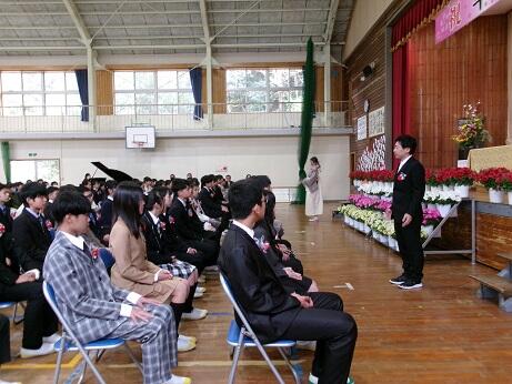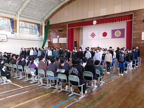 生徒指導主事からは、春休みに気をつけることの指導がありました。春休みを安心・安全に過ごしましょう。