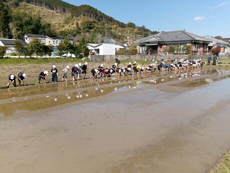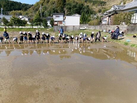 3月21日(木)には、JAはまゆうや地域ボランティアのご協力のもと、4年生が田植えを行いました。