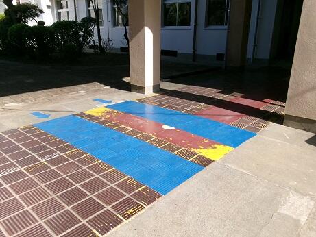 6年生が卒業記念に渡り廊下のペンキ塗りを行ってくれました。土足で通る部分がはっきりと分かるようになりました。