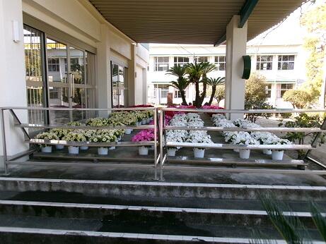 また、日南市環境整備員の方々が卒業式用のペチュニアの花鉢の準備をしてくださいました。どちらも、ありがたいことです。