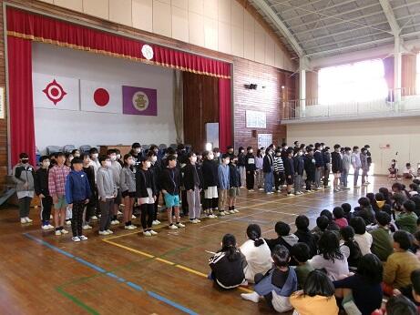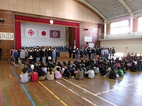 3月22日(金)の朝の活動で、卒業生と1~4年生とのお別れ集会が行われました。