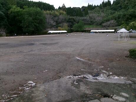 10月22日(火)の大雨で、運動場の水はけがよくない状態になっています。児童用の団テント付近は水田のようです。