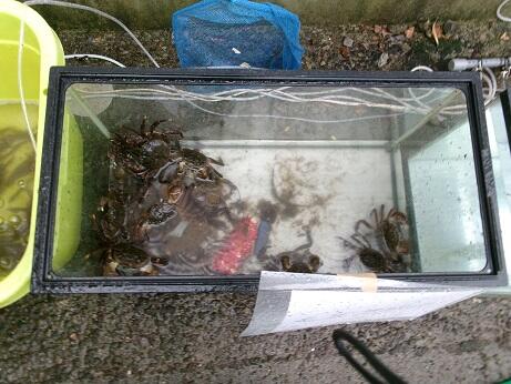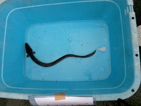 ヤマメやウナギ、山太郎がに、チョウザメ、ナマズ、ザリガニ、ドジョウなど、いろいろな川の生き物とふれあいました。