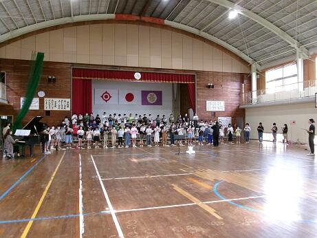 10月30日(水)には、音楽の授業で、日南市音楽大会に向けて4年生が体育館で合唱の練習をしていました。