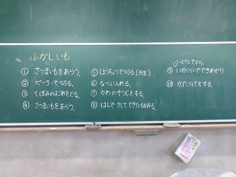 10月30日(水)には、2クラス目のおいも料理「ふかしいも」にチャレンジでした。おいもをふかし終えるまで、サツマイモクイズにも取り組んでいました。ふかしいものいい香りがしていました。もう1クラスは11月1日(金)です。