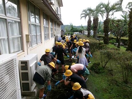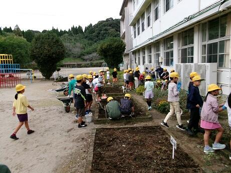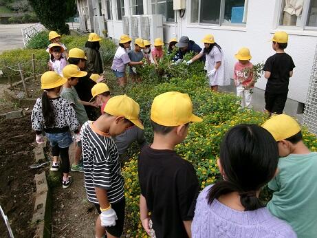 10月31日(木)の朝の活動では、みどりタイムとして2・4・6年生が学級園の手入れをしていました。