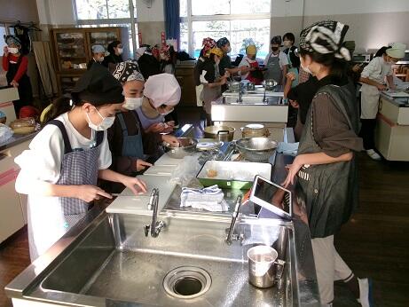 12月13日(金)には、5年生のもう1クラスが家庭科で調理実習を行い、ご飯とみそ汁を作りました。