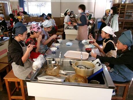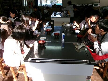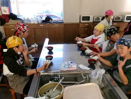 みそ汁は、いりこでしっかりとだしを取って、具材はそれぞれの班で違っていたようでした。おいしそうでした。