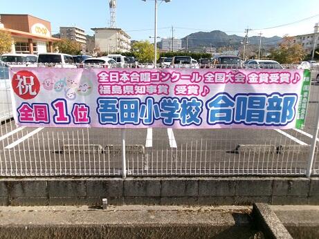 なお、コープみやざき日南店の店長さんのお許しを得て、吾田小合唱部の横断幕をはらせていただいています。