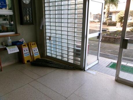 12月26日(木)の午後には、吾田小学校管理棟玄関に作られたたばかりの青竹の竹ぼうきが置かれてありました。